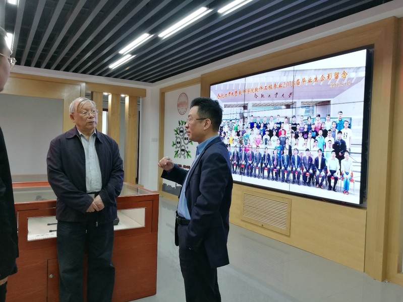 杨学志院长向陈鲸院士介绍了学院基本情况、专业人才培养工作以及软件工程专业的发展现状与前景。陈鲸院士先后参观了学院党建工作展示、大学生创新训练项目成果展示、大学生创新工作室以及学生实验教学专用实验室。陈鲸院士指出,当前信息技术的快速发展对软件工程人才有着迫切的需求,软件工程专业的建设应紧密结合科技发展与行业应用的需求,创新人才培养模式,突出专业培养特色,推动人才培养质量的持续提升。