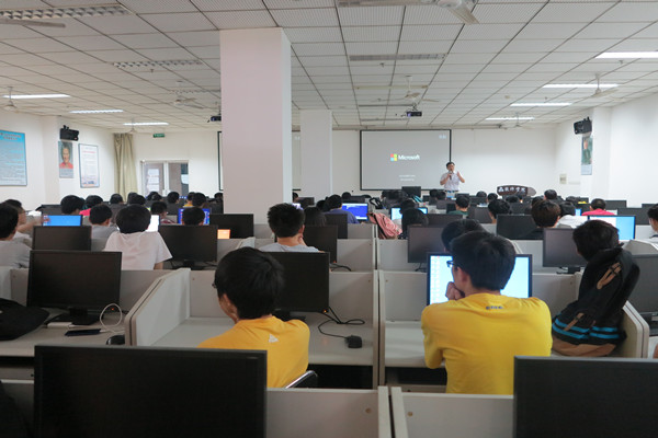 微软(中国)有限公司开发工具及平台事业部张建经理首先代表微软中国向学院全体师生致以诚挚的问候和感谢,然后他向大家介绍了Imagine Cup 微软“创新杯”全球学生大赛(目前全球规模最大、影响最广的学生科技大赛)并将历年来的获奖优秀作品逐一展示并鼓励同学们积极思考科技的用途,希望大家一起追逐梦想,用科技改变世界。