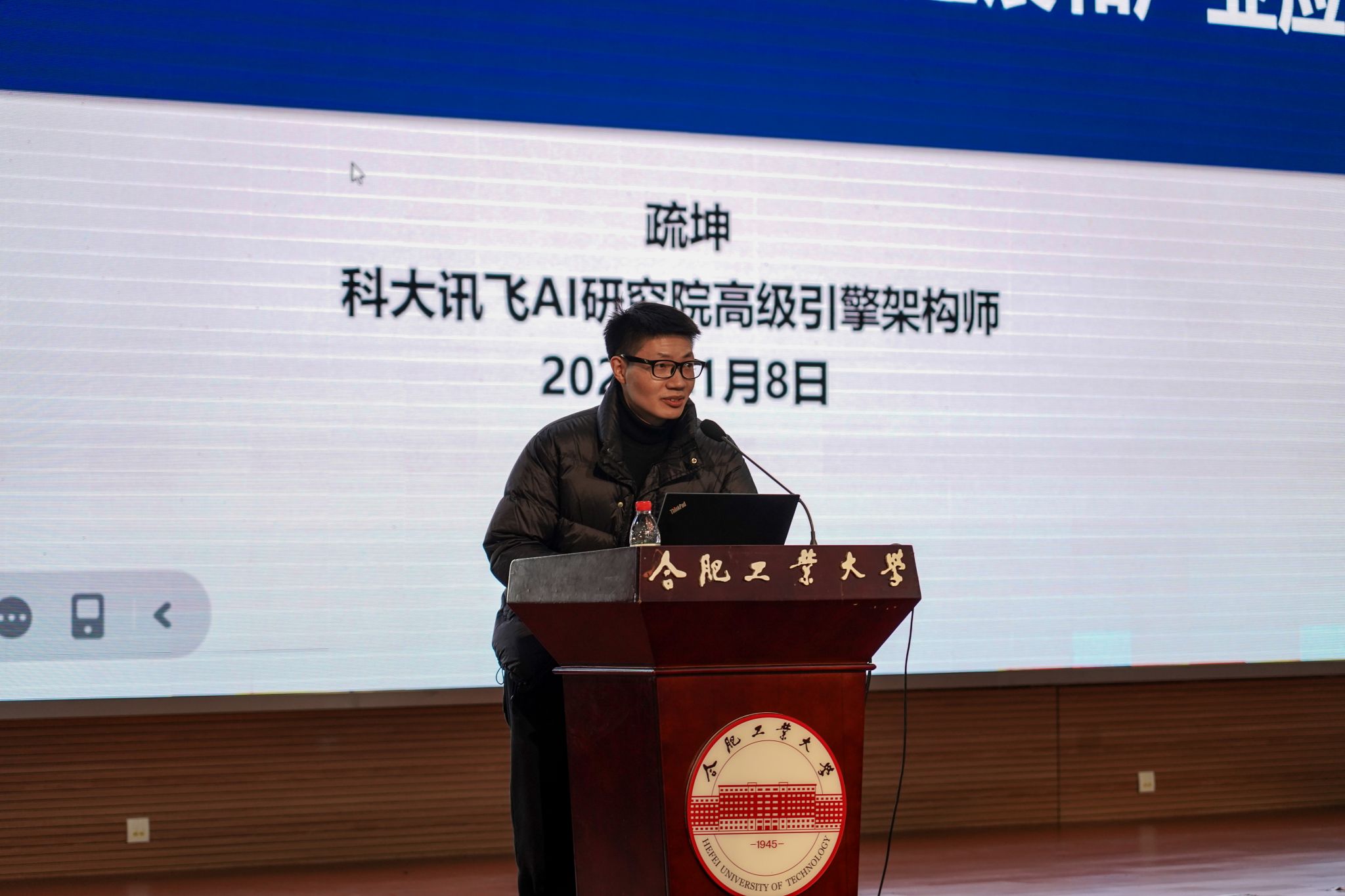 1月8日下午,伟德国际娱乐1946英国体育在翡翠科教楼二楼大报告厅举办“对话软件”专业讲堂第三期,邀请科大讯飞股份有限公司数字人条线引擎负责人疏坤作题为《大模型时代的人工智能技术进展和产业应用》的报告。学院实验中心主任谢文军主持。学院辅导员、2023级和2024级全体本科生320余人参加报告会。