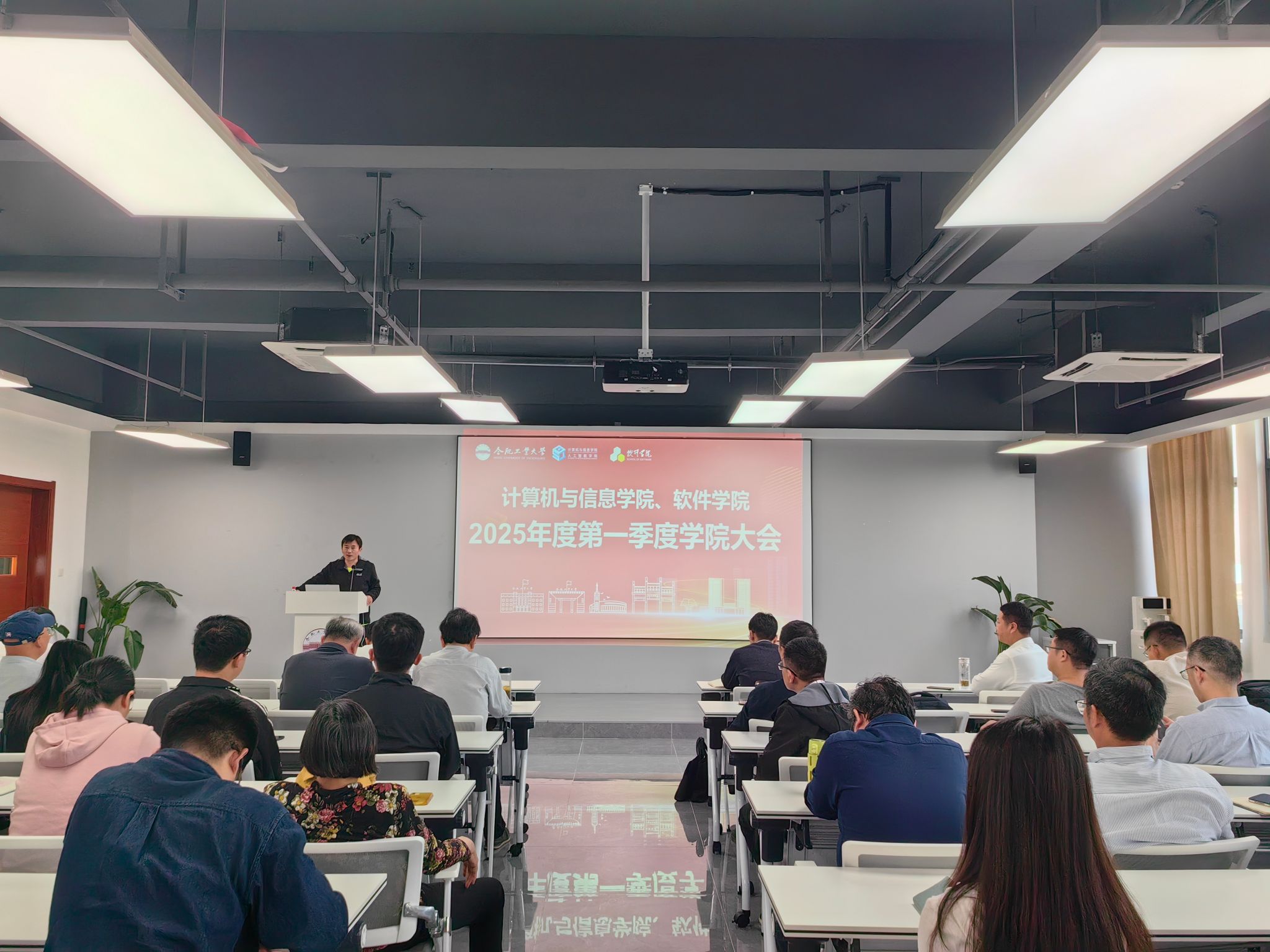 院长洪日昌首先介绍了1月份以来新入职的8位教师,并代表学院对新进教师表示热烈的欢迎。紧接着,他对一流学科培育计划进行了深入解读。他指出,学院将整合资源、聚焦优势学科,全力冲刺新一轮学科评估。针对师生关注的科研用地问题,他表示学院正积极与学校相关部门沟通协调,致力于尽快解决科研场地紧张的现状。此外,他明确了2025年重点工作,并部署推进计划,要求全院上下形成合力,推动学院高质量发展。