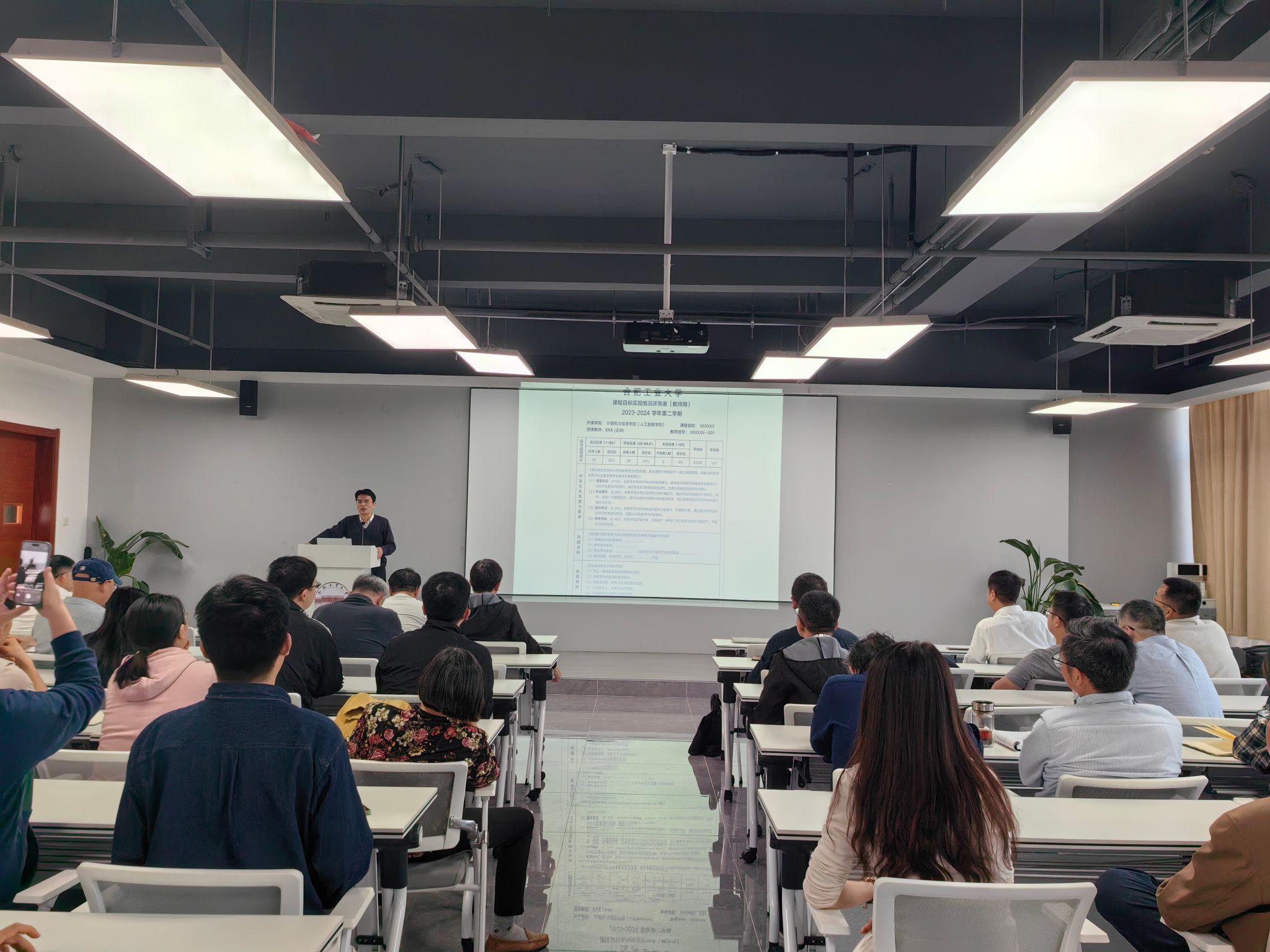 副院长夏娜围绕教学材料的规范管理、教学事故认定标准以及毕业设计环节的流程与质量把控等方面进行了详细讲解。他特别强调了教学材料的规范性和完整性,要求教师们严格按照教学相关规定开展教学活动。同时,对毕业设计环节提出了高标准、严要求,希望指导教师能够认真履职,助力学生高质量完成毕业设计。
